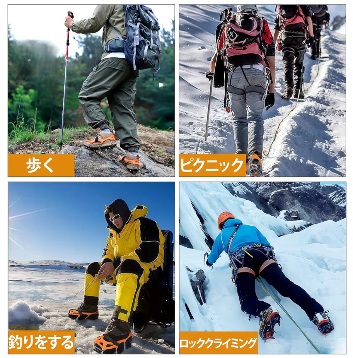 登山や雪道で活躍しています。下り坂でもしっかり踏ん張れて、足元の不安がなくなりました。
