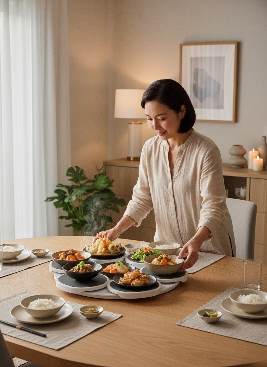 SmartServe™ 回転サービストレイは、 360°回転トレイで料理をスムーズにシェアできる実用性重視のアイテムです。 席を立つ必要がなく、落ち着いた食事時間をサポートします。